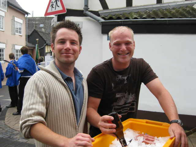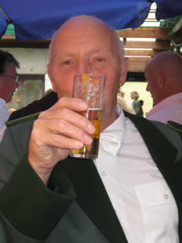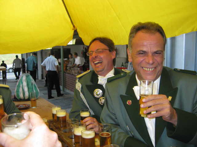 während des schweißtreibenden Festzuges durch Alfter mit einem kühlen Bier