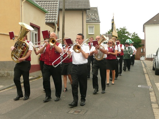 sich die Schützenbruderschaft begleitet von den Musikfreunden, zum Marsch