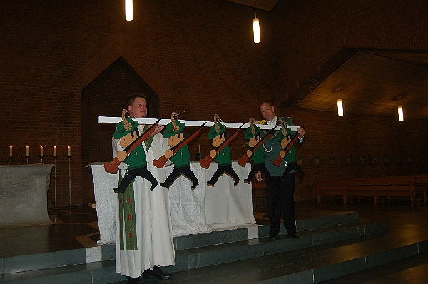 Diakon und Schützenpräses Adi Halbach in der Messe ein paar Überraschungen