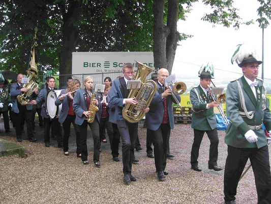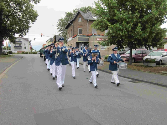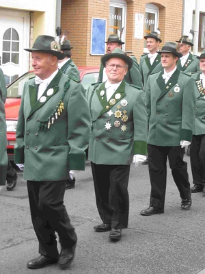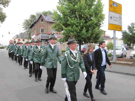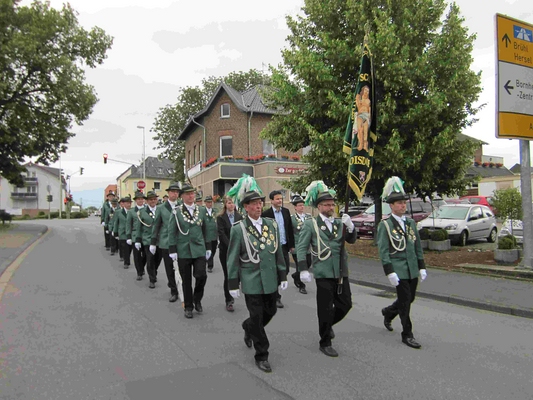 sich die Schützenbruderschaft begleitet von den Musikfreunden, zum Marsch