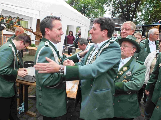 Freunde der Schützenbruderschaft auf den Schützenplatz begrüßt werden.