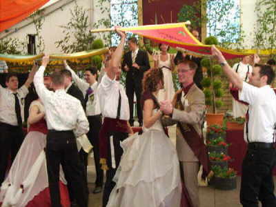zuwerfen von Blumensträußchen wurden die Besucher des Balls begrüßt.