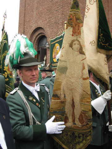 Bruderschaft die Begleitung der Bezirksstandarte für die Festmesse des