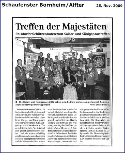 Roisdorf am Samstag, dem 21.11.2009, Ausrichter des jährigen Kaiser- und