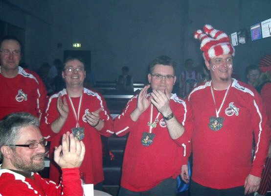 Schützenbruder und Diakon Adi Halbach ging es dann gemeinsam im Outfit des 1. FC