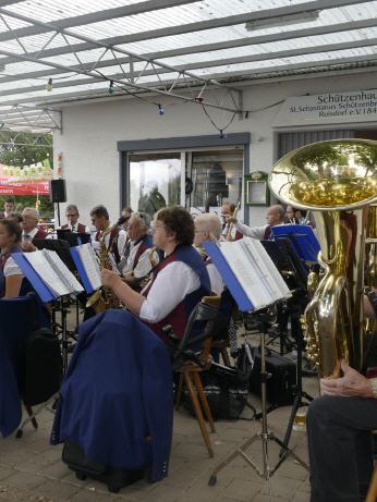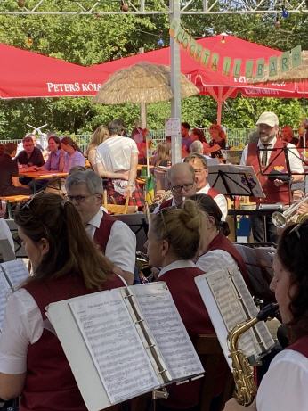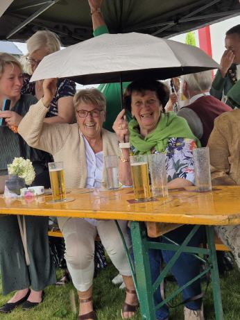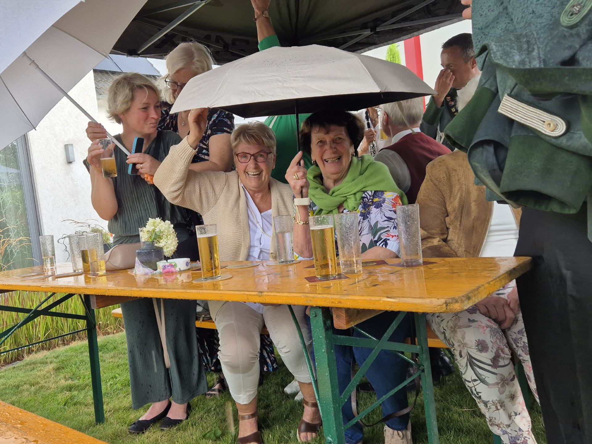 Das zwischenzeitliche Unwetter nahmen die Gäste mit viel Humor und die Musikfreunde ließ sich dadurch nicht davon abhalten, zu einem letzten Ehrentanz aufzuspielen.