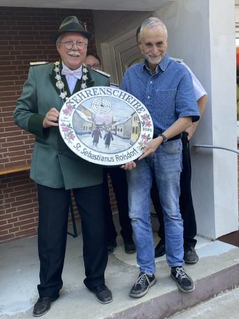 - Dr. Ernst Gierlich, dem Vorsitzenden der Heimatfreunde Roisdorf, für die wieder einmal großartig gestaltete Ehrenscheibe,
