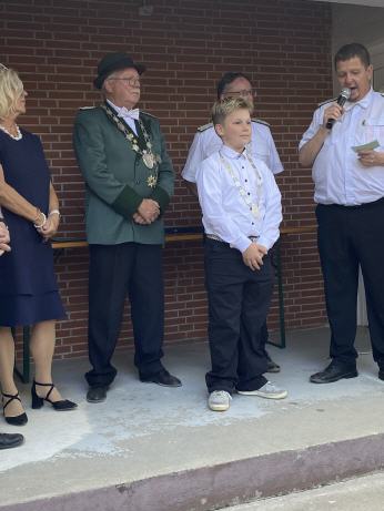 Danach zog die Bruderschaft zum Schützenplatz, wo unser 1. Brudermeister im Beisein des noch amtierenden Königspaares sowie der neuen Bürgermajestäten die zahlreich erschienenen Gäste begrüßte.