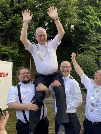 Das eigentliche Königsschießen entschied schließlich Dr. Mark Steinhauer, gegen 14 weitere Konkurrenten, mit dem 75. Schuss für sich - und wurde damit nach 2016 zum zweiten Mal Roisdorfer Schützenkönig.