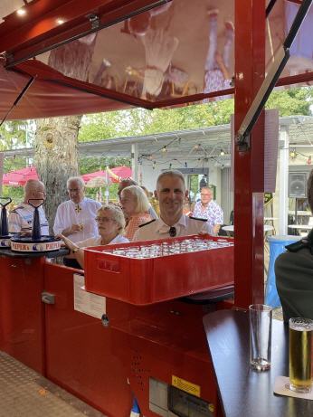 Gegen 16:00 Uhr versammelte sich die Bruderschaft in Alfter zur offiziellen Verabschiedung des amtierenden Königspaares Christian und Silke Rott. Gemeinsam mit den neuen Bürgermajestäten sowie einer Abordnung der Musikfreunde Roisdorf machten wir uns auf den Weg zum Königspaar, das - unterstützt von vielen fleißigen Helferinnen und Helfern - für Speis und Trank gesorgt hatte.