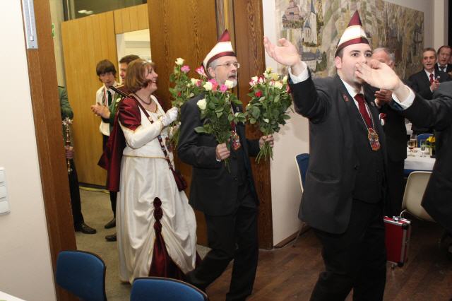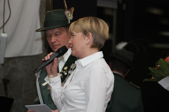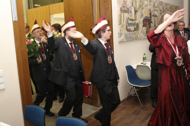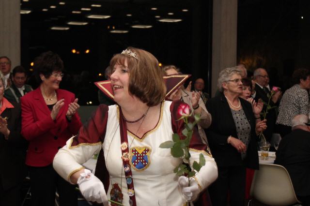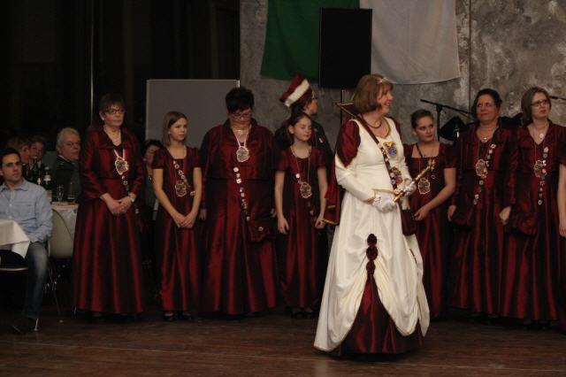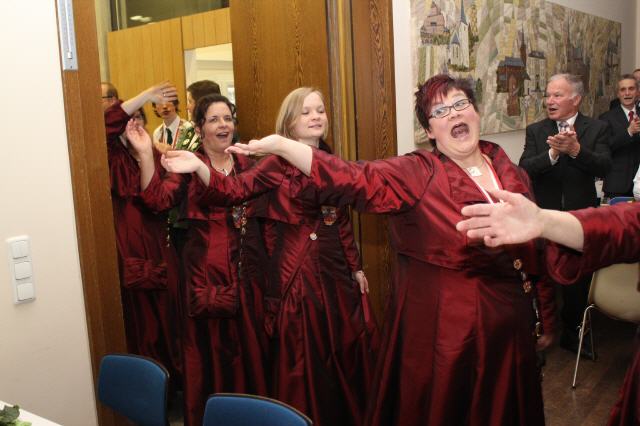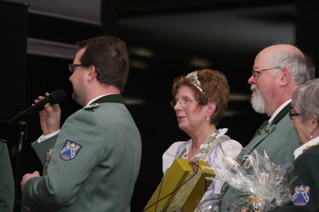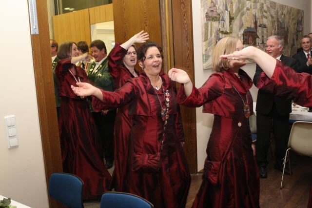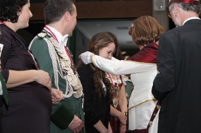 Nach Vortrag ihres Sessionsliedes übereichte, nachdem sie einige Worte an die Gastgeber und Gäste gerichtet hatte, ihren Sessionsorden an die Majestäten und die Vertretungen der Bruderschaft.