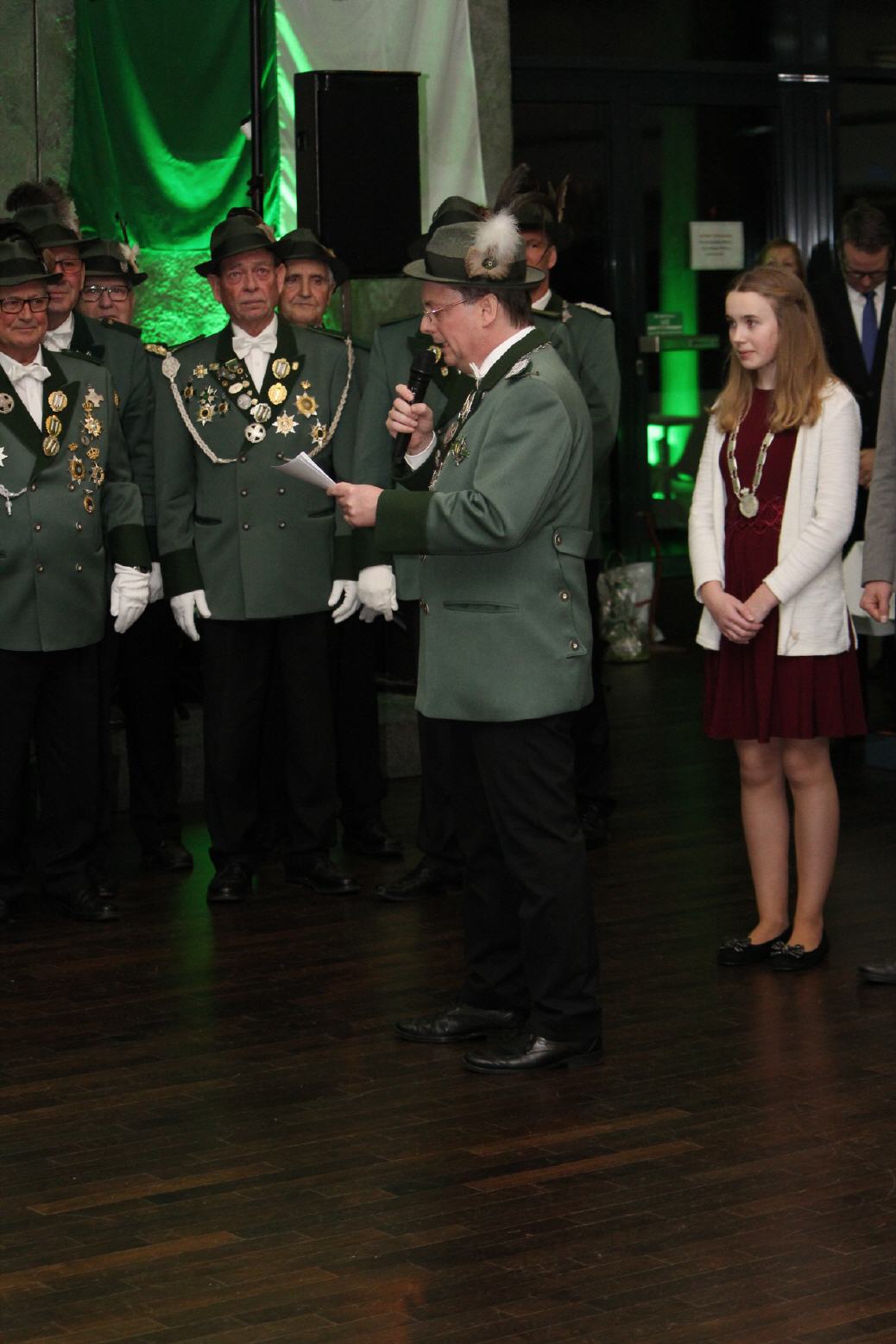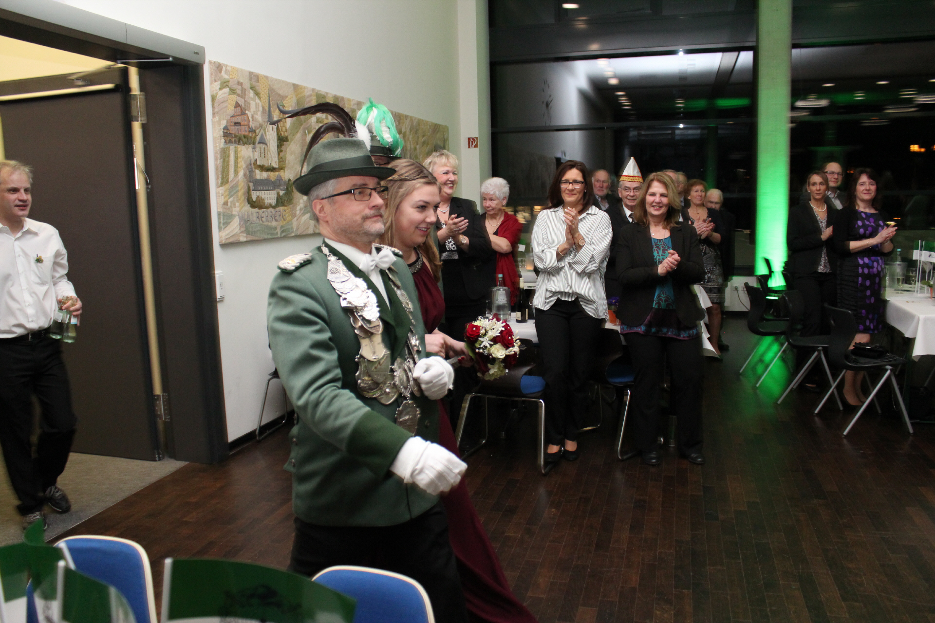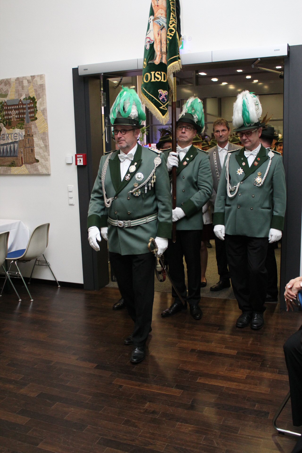 Als Höhepunkt des Tages fand der diesjährige Krönungsball wieder im Rathaussaal der Stadt Bornheim statt. Kurz vor 20 Uhr erhoben sich die zahlreich geladenen Gastbruderschaften und Gäste von ihren Plätzen und applaudierten zum Einmarsch der Schützenbruderschaft.