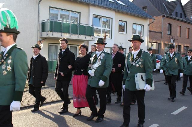 In einem kleinen Festzug marschierte die Schützenbruderschaft mit ihren Majestäten zum anschließenden Frühstück im Landgasthaus Gaststätte "Zur gemütlichen Ecke".
