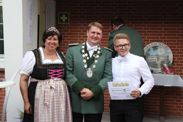 Ein erster Höhepunkt des Festes war auch in diesem Jahr wieder das Schießen um den Titel des Bürgerkönigs. Schießen mit dem Kleinkaliebergewehr auf einen Holzvogel für alle Gäste war angesagt. Der Bürgerkönigsvogel wird seit vielen Jahren detailgetreu von Karl-Heinz Faßbender und Josef Breuer gefertigt und bemalt.