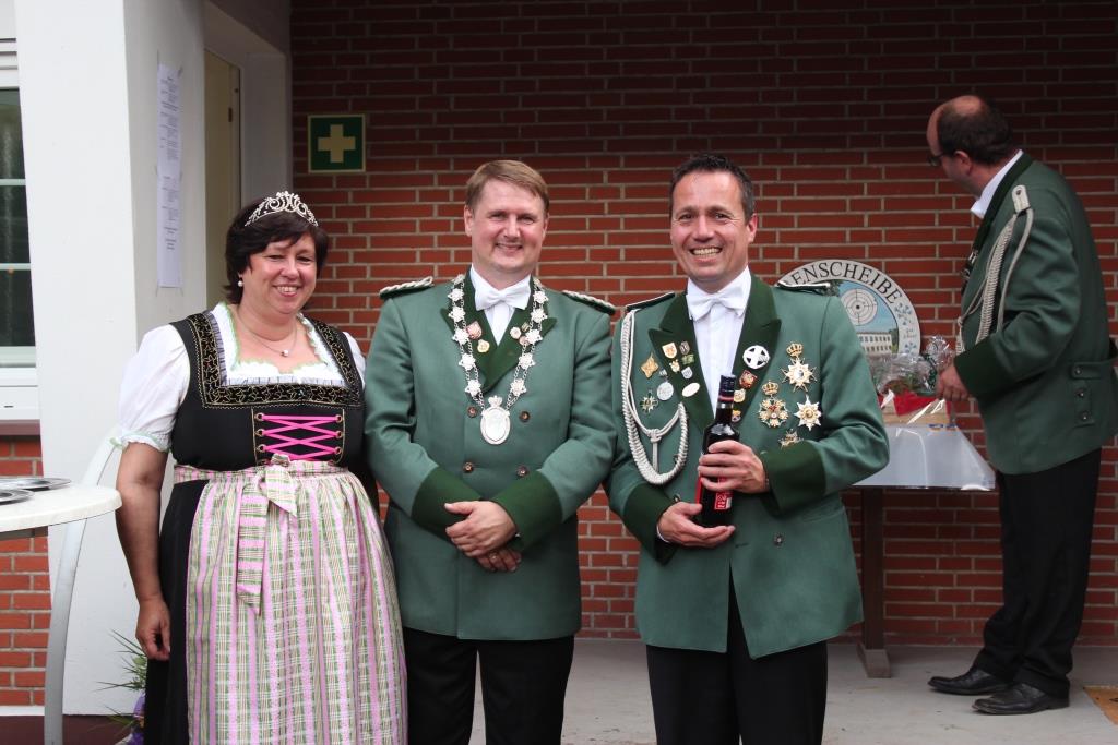 Präses Adi Halbach eröffnete erfolgreich das Königsschießen. Den Kopf holte mit dem ersten Schuss der noch amtierende König Michael Jaeschke Den rechten Flügel schoss Gerhard Linden mit dem 57. Schuss. Glücklicher Schütze auf den linken Flügel war Stefan Bohne mit dem 63. Schuss. Mit dem 71. Schuss errang Wilhelm Rech den Schweif.