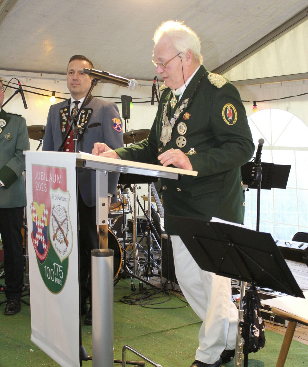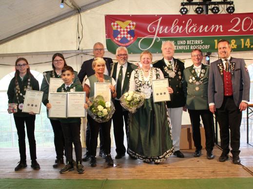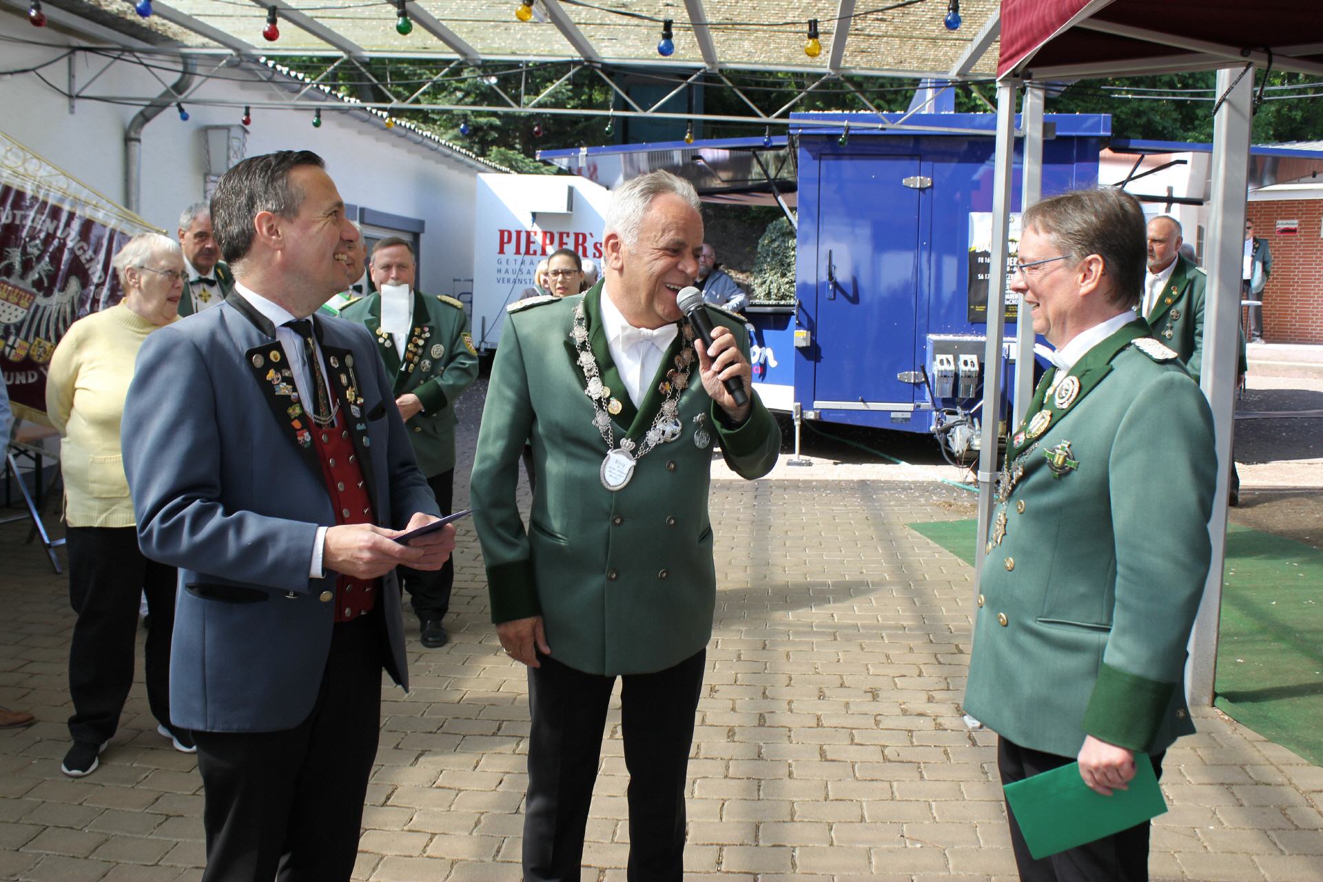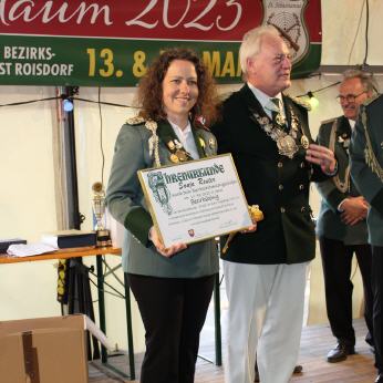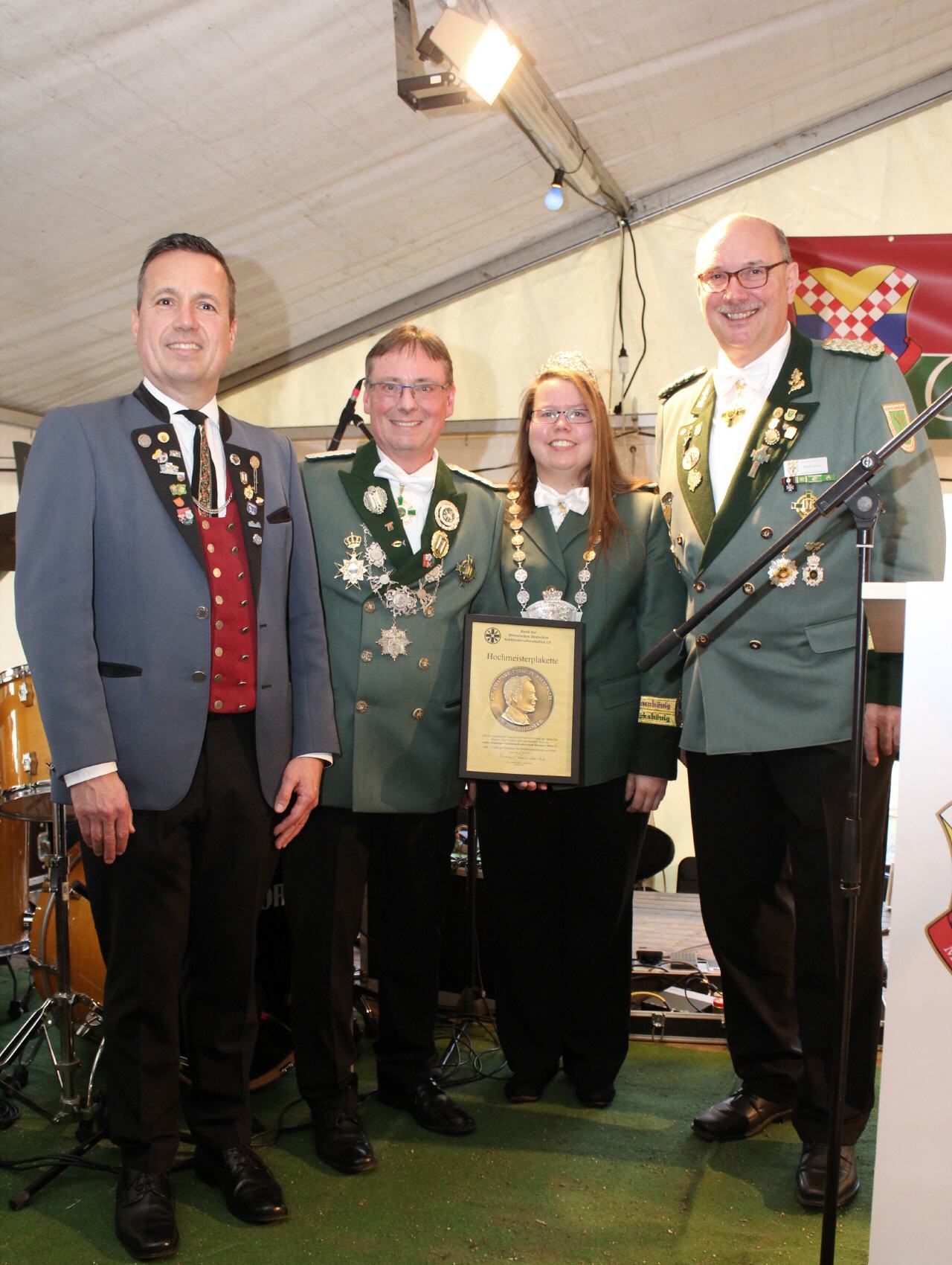 Nachdem der Ortsvorsteher für Roisdorf, Karl-Heinz Nauroth, ebenfalls gratuliert hatte, überreichte der stellvertretende Diözesanbundesmeister Peter Horst den Roisdorfer Schützen die Hochmeisterplakette des Bund der Historischen Deutschen Schützenbruderschaften zu ihrem Jubiläum.