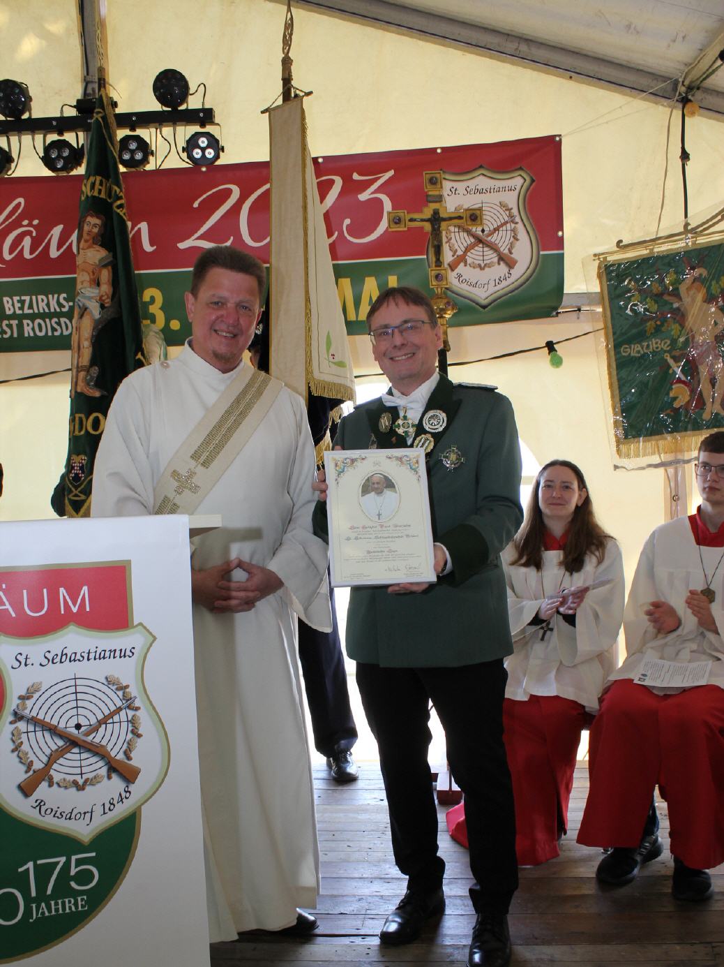 Schließlich war es Präses Adi Halbach eine besondere Ehre, den Roisdorfer Schützen, anlässlich ihres 175-jährigen Bestehens, den Apostolischen Segen Seiner Heiligkeit Papst Franziskus zu überreichen.
