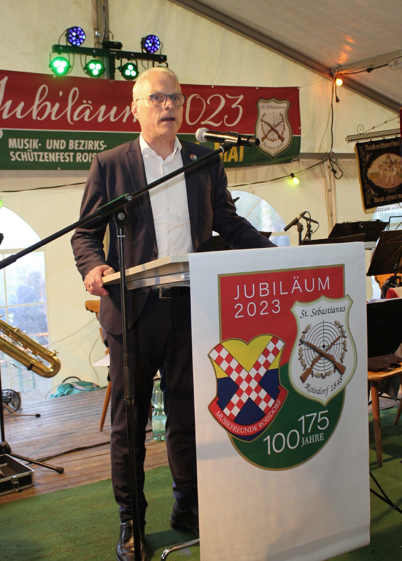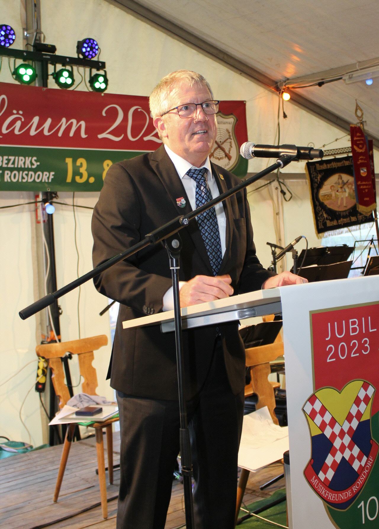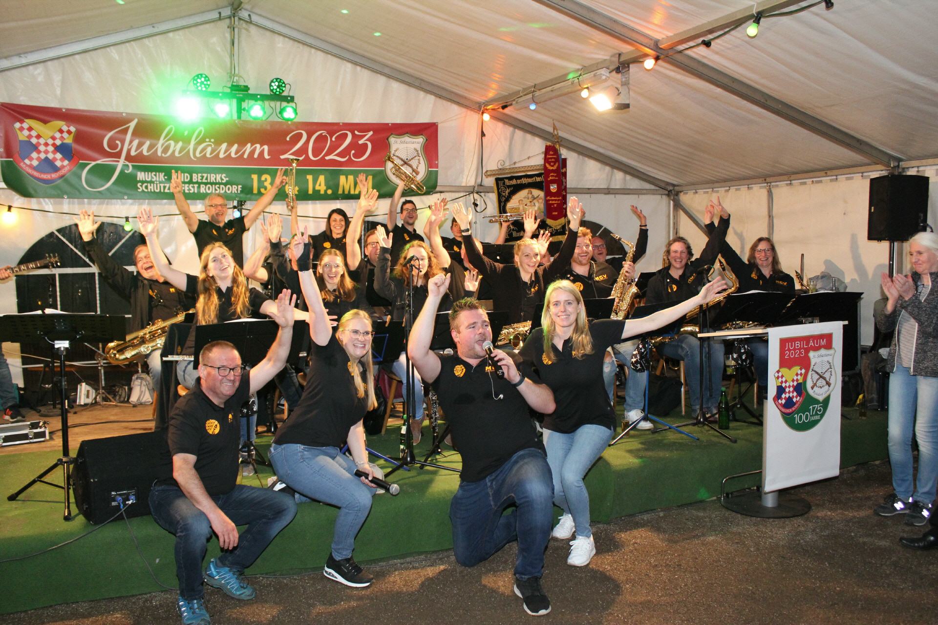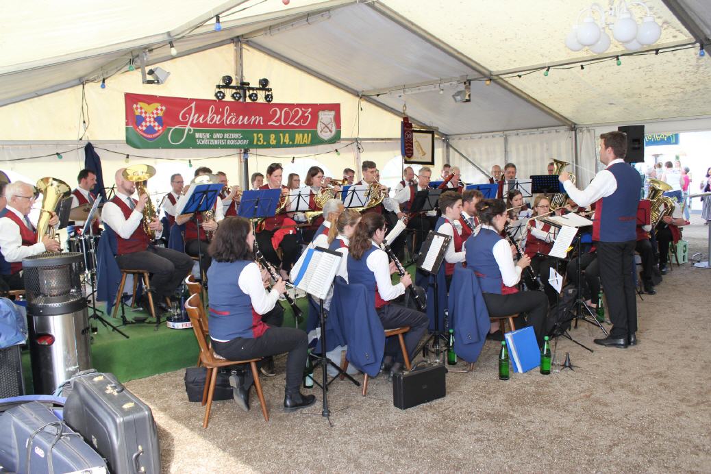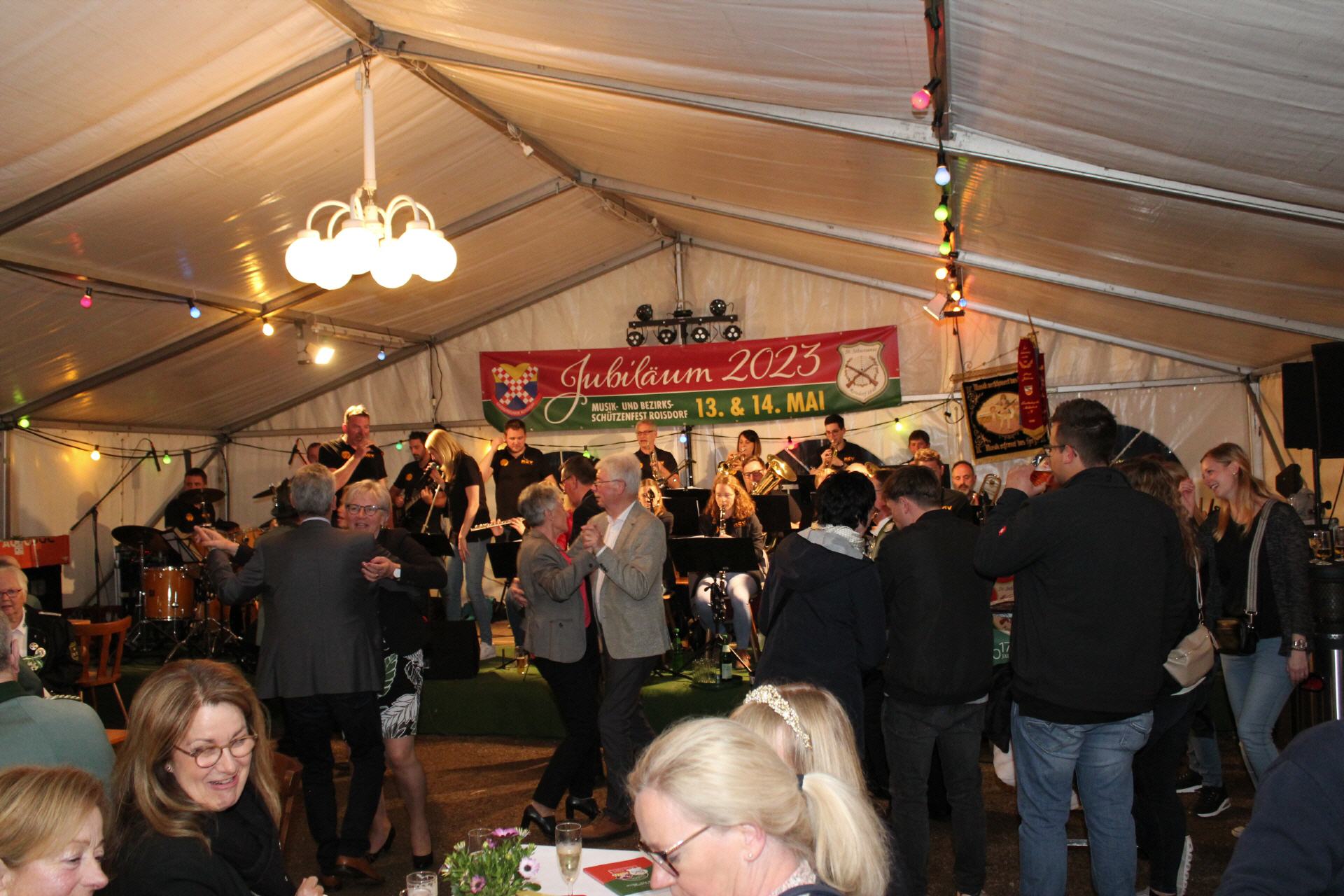 Am Samstagnachmittag, 13. Mai startete schließlich das Fest, zunächst allerdings nur mit ausgewählten Schießwettbewerben. Der festliche Auftakt erfolgte dann am Abend: Zunächst begrüßten der 1. Brudermeister der Roisdorfer Schützen Walter Klemmer, der 1. Vorsitzende der Musikfreunde Roisdorf Dr. Heribert Rech sowie Bezirksbundesmeister Gottfried Schmitz die zahlreichen Gäste im voll besetzten Zelt auf dem Roisdorfer Schützenplatz.