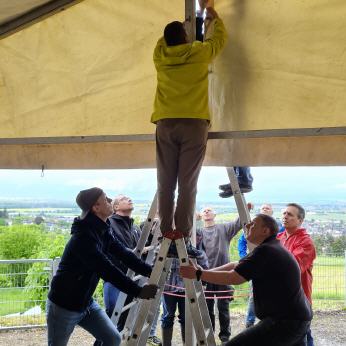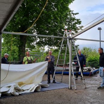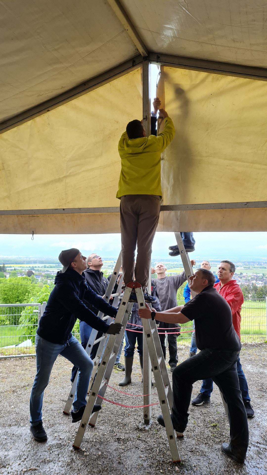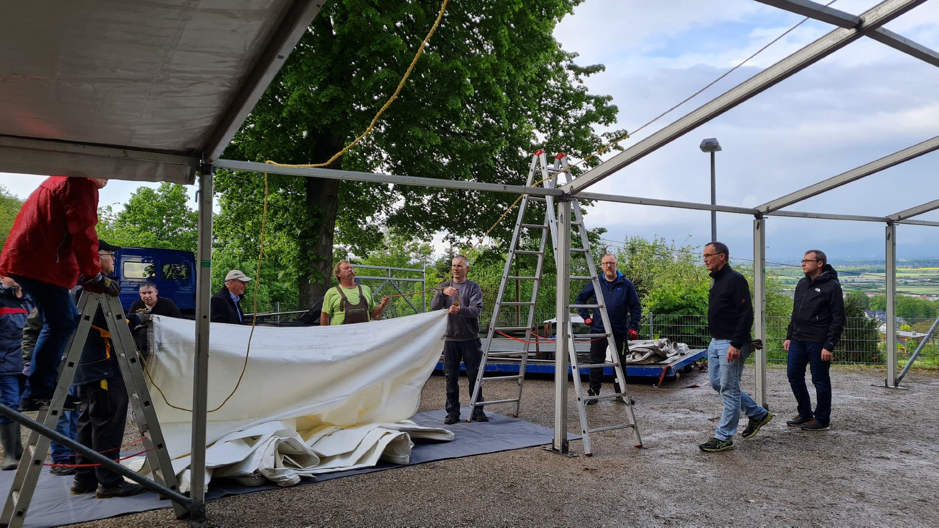 Viele Termine der geschäftsführenden Vorstände beider Vereine waren nötig, um all das zu planen und vorzubereiten, was für ein solches Fest nötig ist: Bauliche Maßnahmen, Genehmigungen, Ablauf der Veranstaltung, Einladungen, Parkflächen, Festschrift & Einkauf, um nur einige Themen zu nennen. Und je näher das Fest rückte, umso mehr waren auch die aktiven Mitglieder der beiden Vereine mit Vorbereitungen beschäftigt.