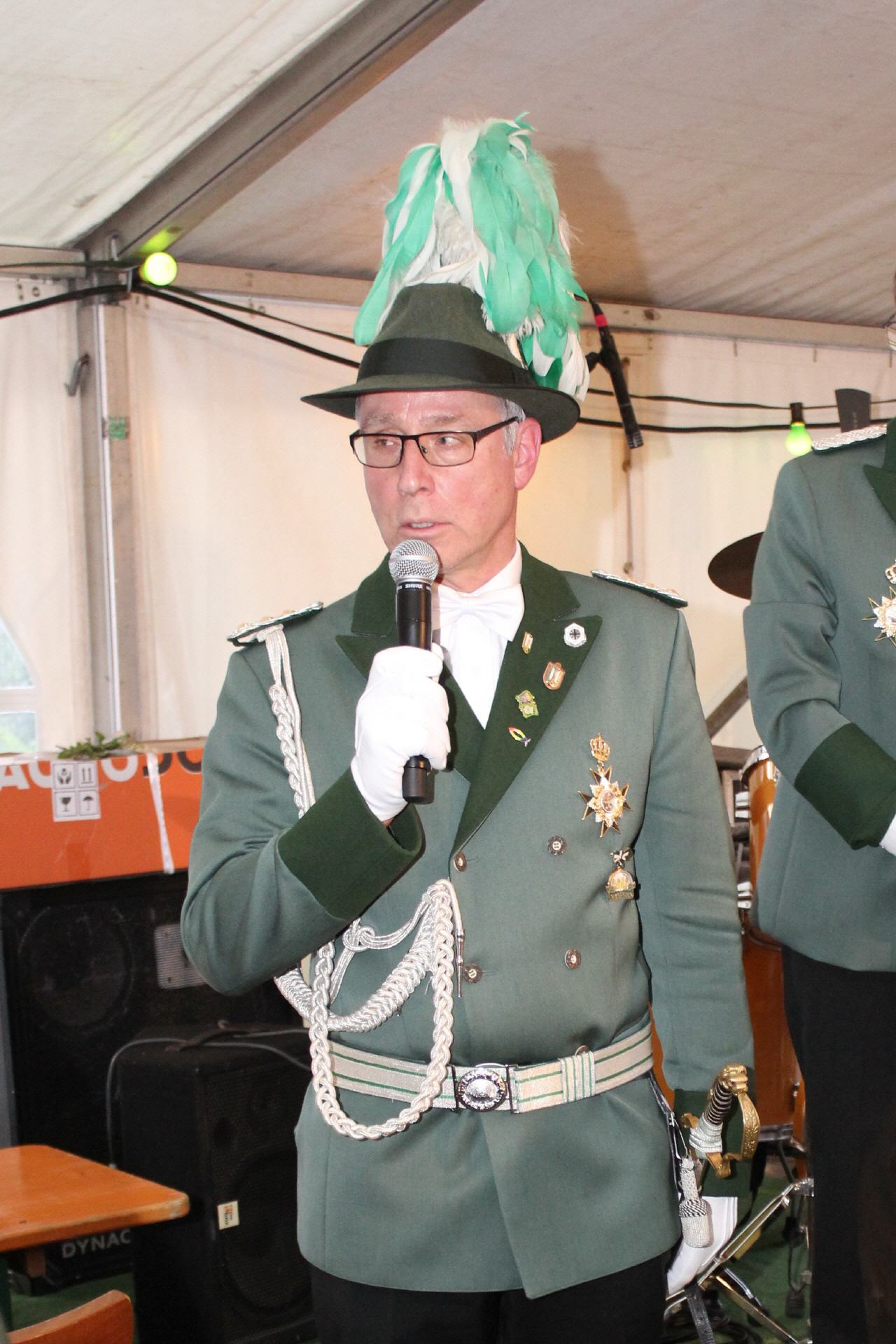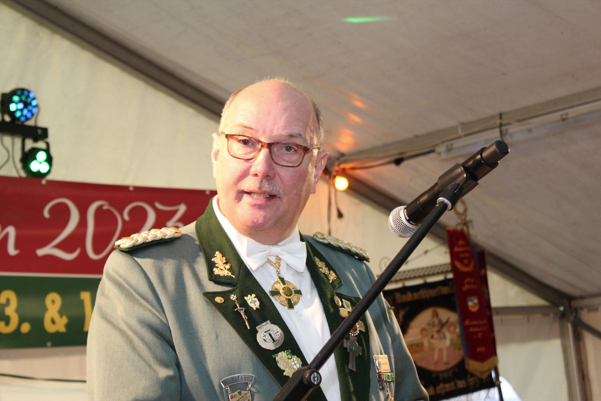 Nach dem Festzug begrüßten Bezirksbundesmeister Gottfried Schmitz, Brudermeister Walter Klemmer und 1. Vorsitzender Dr. Heribert Rech die angetretenen Bruderschaften sowie Gäste auf dem Schützenplatz.