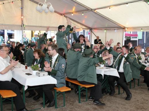 Schließlich waren alle Wettbewerbe ausgeschossen und es kam der spannende Moment der Ergebnisverkündung. Natürlich mussten aber zunächst alle bisherigen Würdenträger ihre Ketten wieder abgeben.