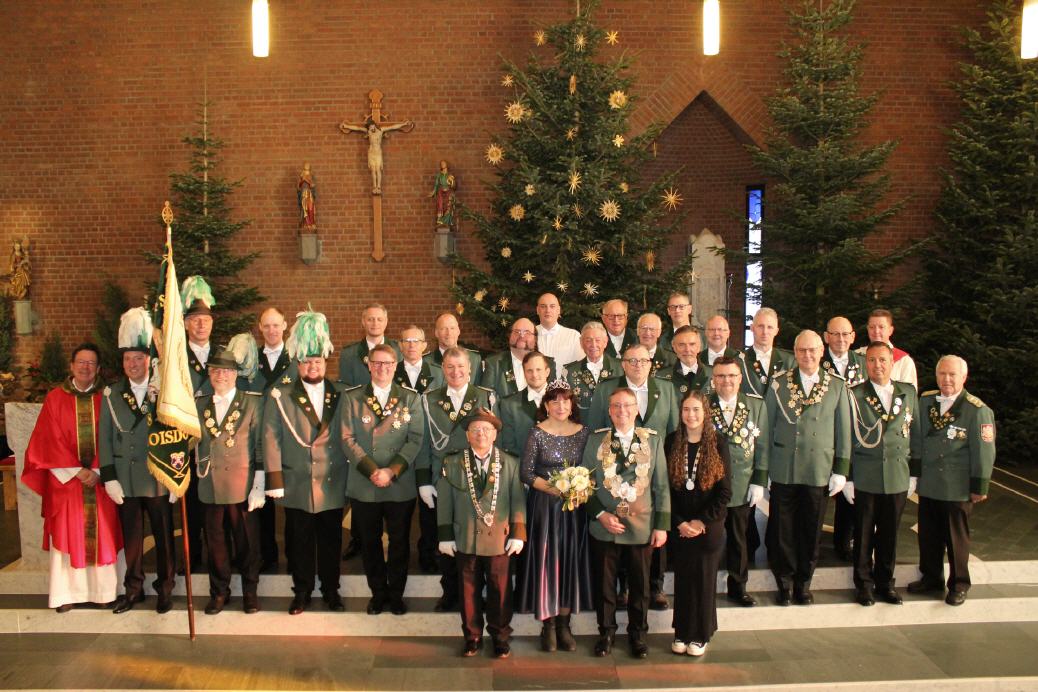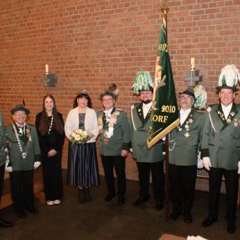 Aufgrund von Schnee und Eis trafen sich die Roisdorfer St. Sebastianus Schützen in diesem Jahr ausnahmsweise direkt an der St. Sebastian Kirche mit ihrem Königspaar Walter und Gabi Klemmer, dem Bürgerkönig Lothar Rehberg sowie der Bürgerprinzessin Hanna Zimmermann zur Festmesse.