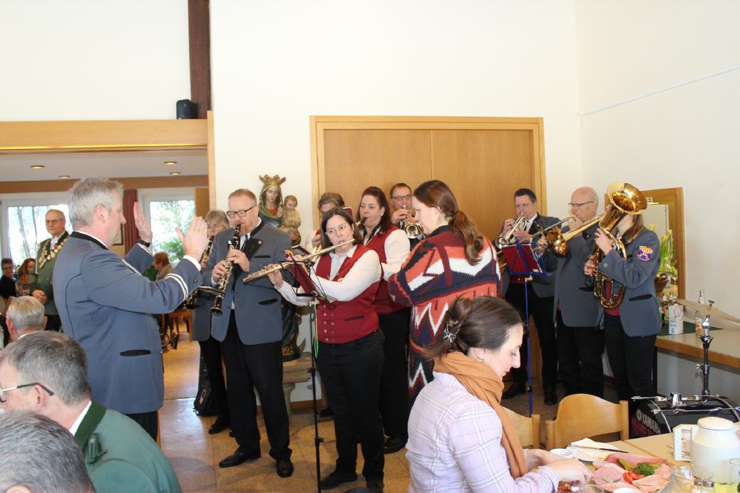 Das anschließende gemeinsame Frühstück fand inzwischen zum dritten Mal in Folge im Pfarrheim St. Clara statt. Dabei unterstützte uns erneut ein Team der Katholischen Frauengemeinschaft Roisdorf. Vor bzw. zum Frühstück gab es noch eine musikalische Einlage der Musikfreunde Roisdorf.
