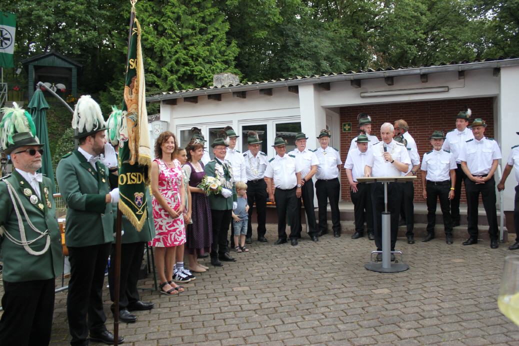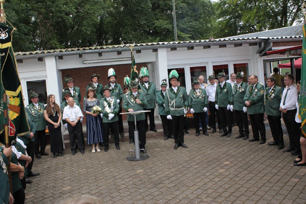 Am frühen Nachmittag startete dann der offizielle Teil mit der Begrüßung der Gastbruderschaften, der Abteilung Schießsport der Sportgemeinschaft Deutscher Bundestag sowie etlicher Ehrengäste und natürlich den Roisdorfer Bürgern und Freunden der Roisdorfer Schützenbruderschaft durch unseren 2. Brudermeister Dr. Mark Steinhauer.