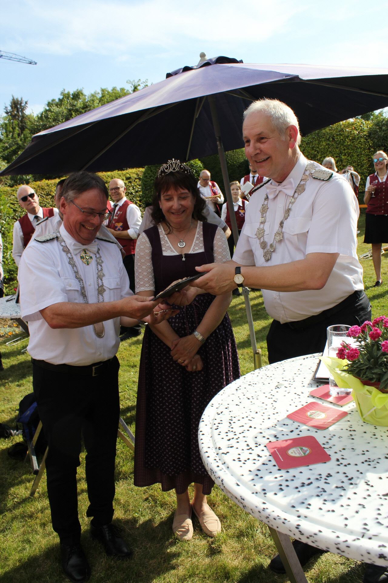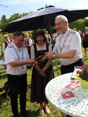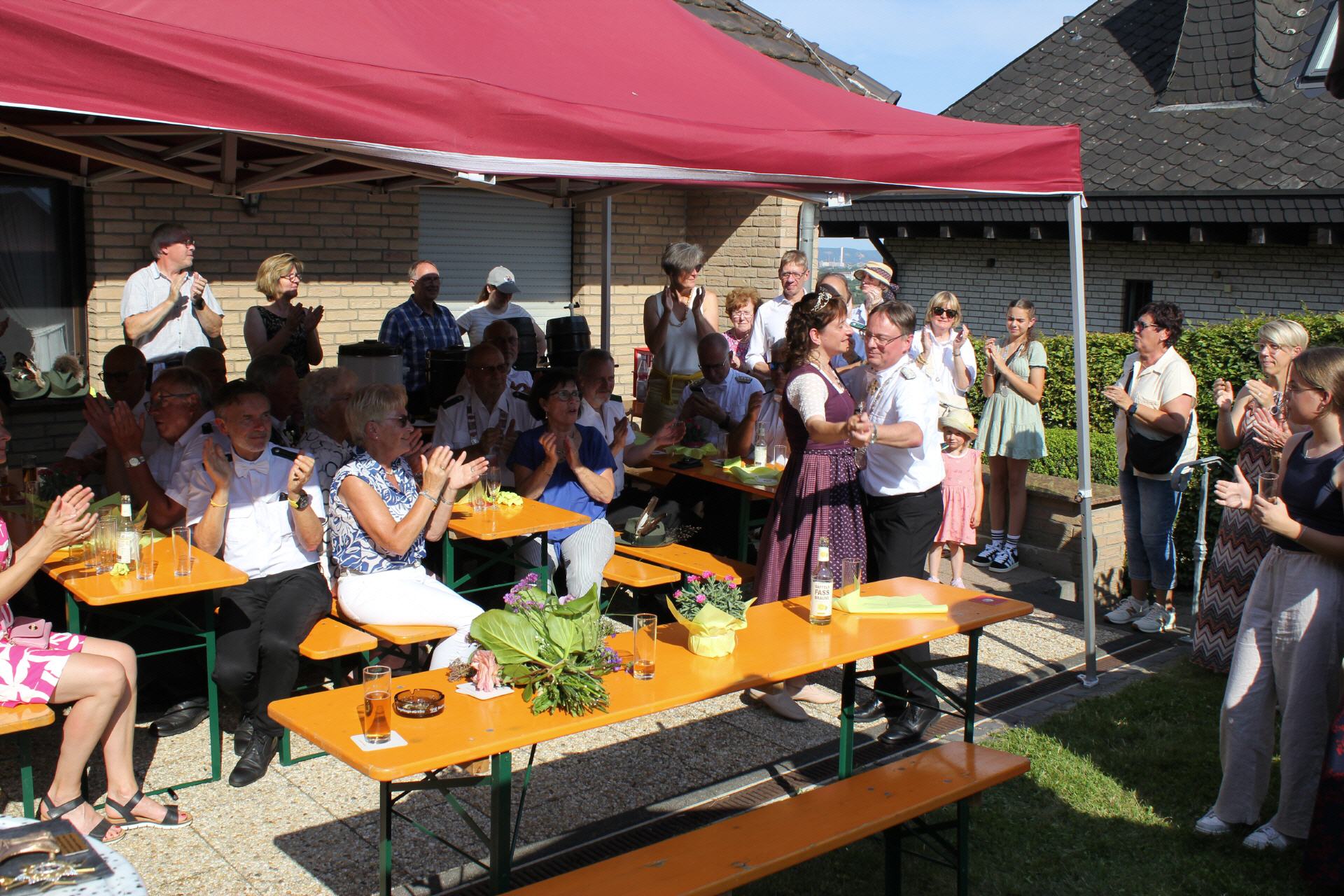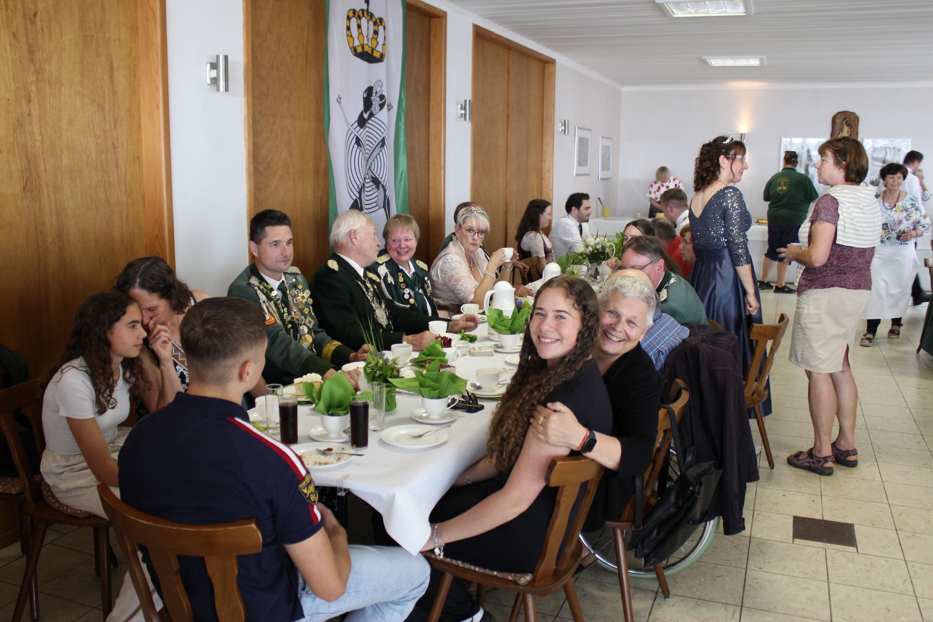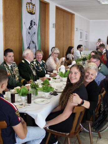 Im Anschluss lud das Königspaar Walter & Gabi Klemmer die Ehrengäste zu Kaffee und Kuchen. Parallel starteten, unter musikalischer Begleitung der Musikfreunde Roisdorf, die Schießwettbewerbe der Gast- und Ortsvereine sowie das Bürgerkönigs- und Bürgerprinzenschießens.