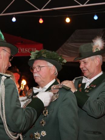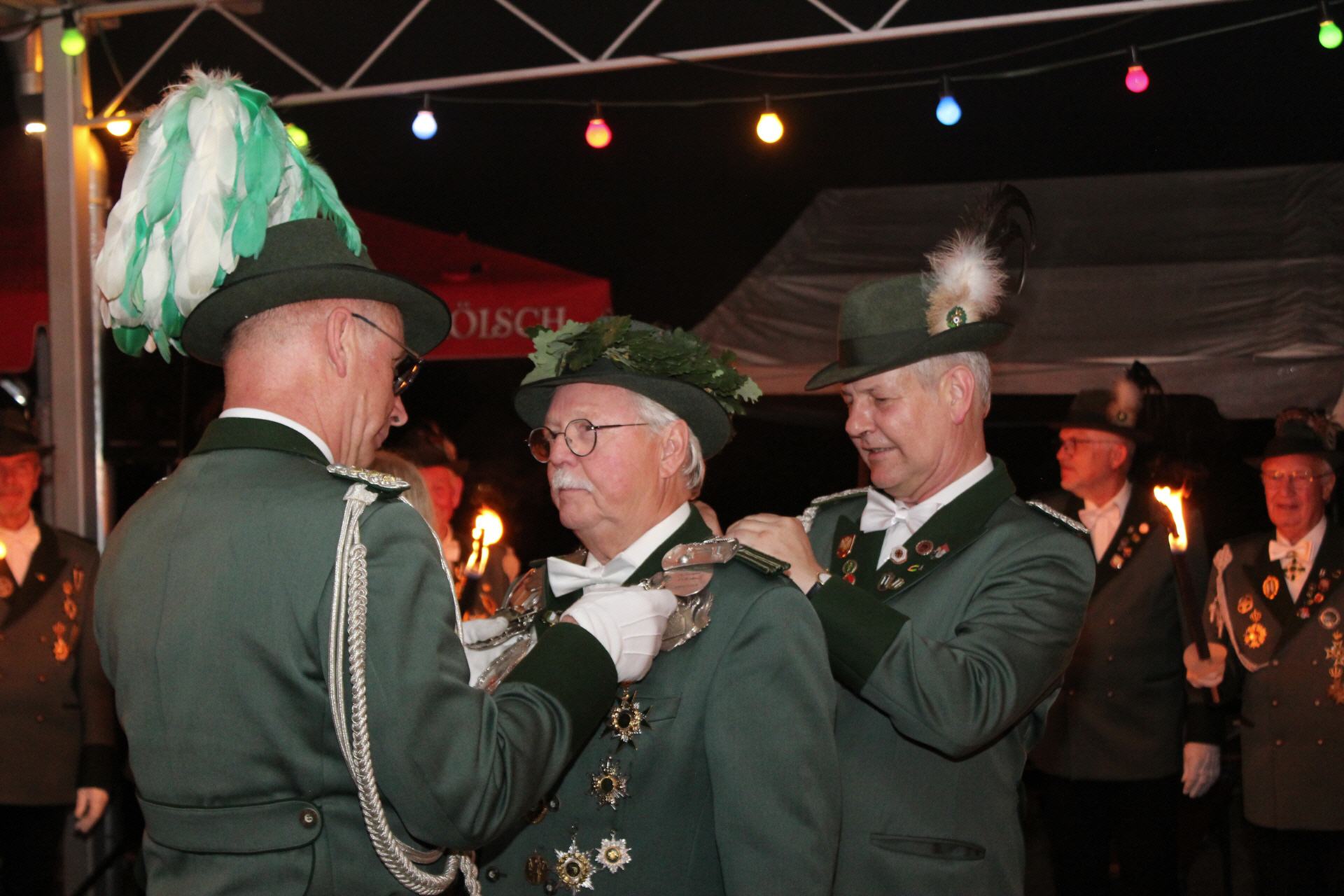 Nach vielen Gratulationen versammelte sich die Bruderschaft bei Fackelschein zur Krönung des neuen Königs, die in diesem Jahr durch unseren 2. Brudermeister sowie durch Hauptmann Frank Plate erfolgte. Und auch der erste Ehrentanz durfte natürlich nicht fehlen.