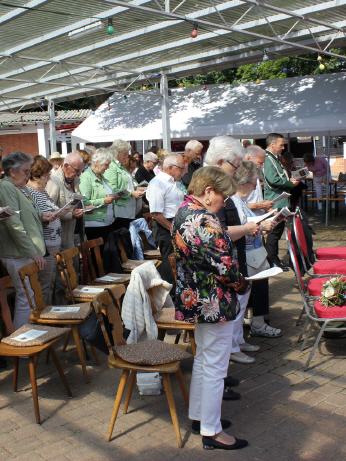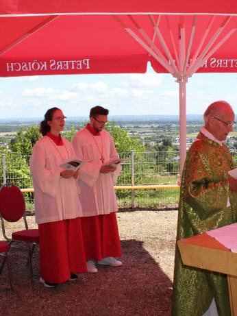 Die gut besuchte Messe wurde bei herrlichem Wetter und mit dem gewohnt wunderbaren Blick ins Rheintal von Pfarrer Windheuser gehalten.