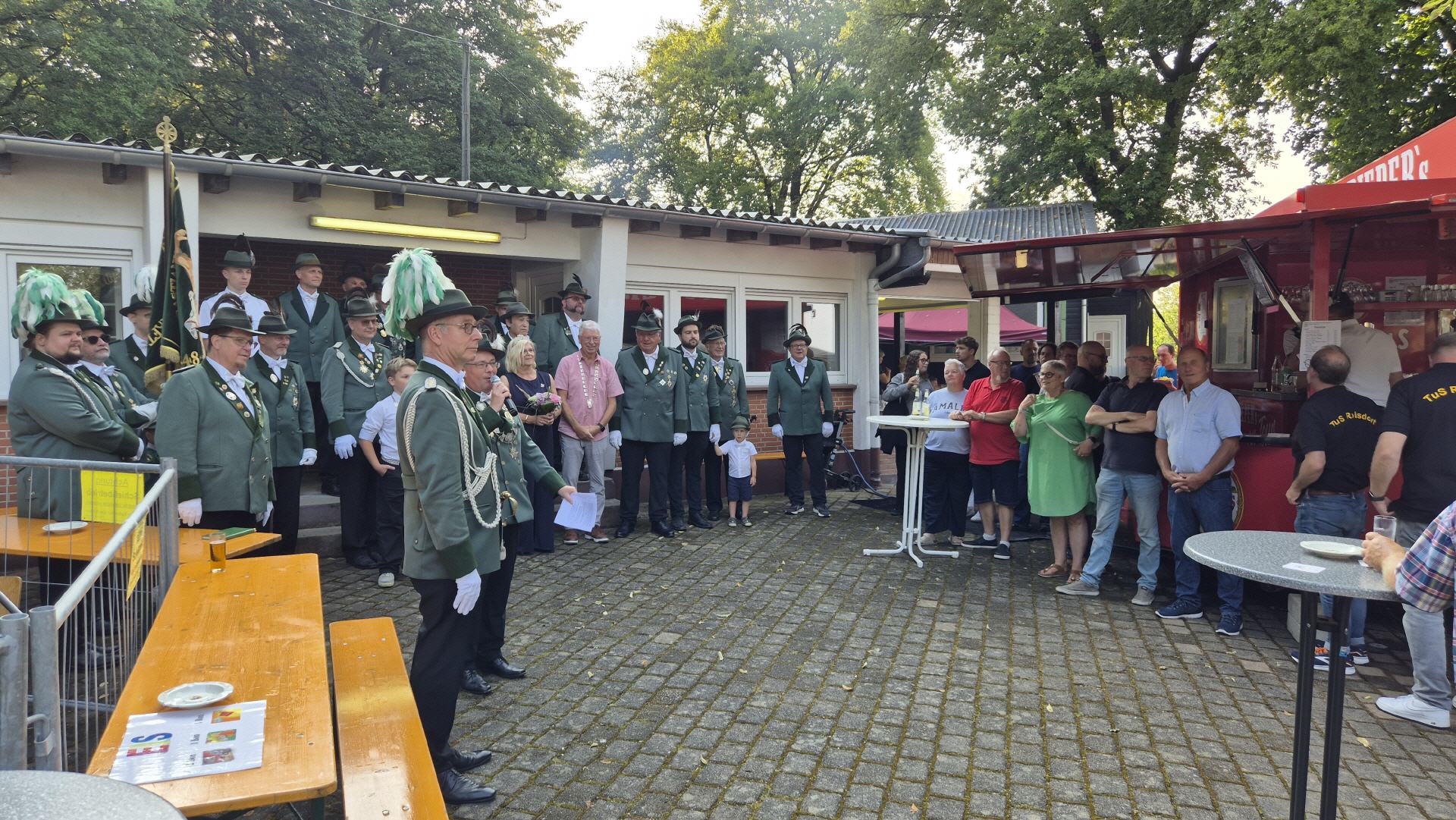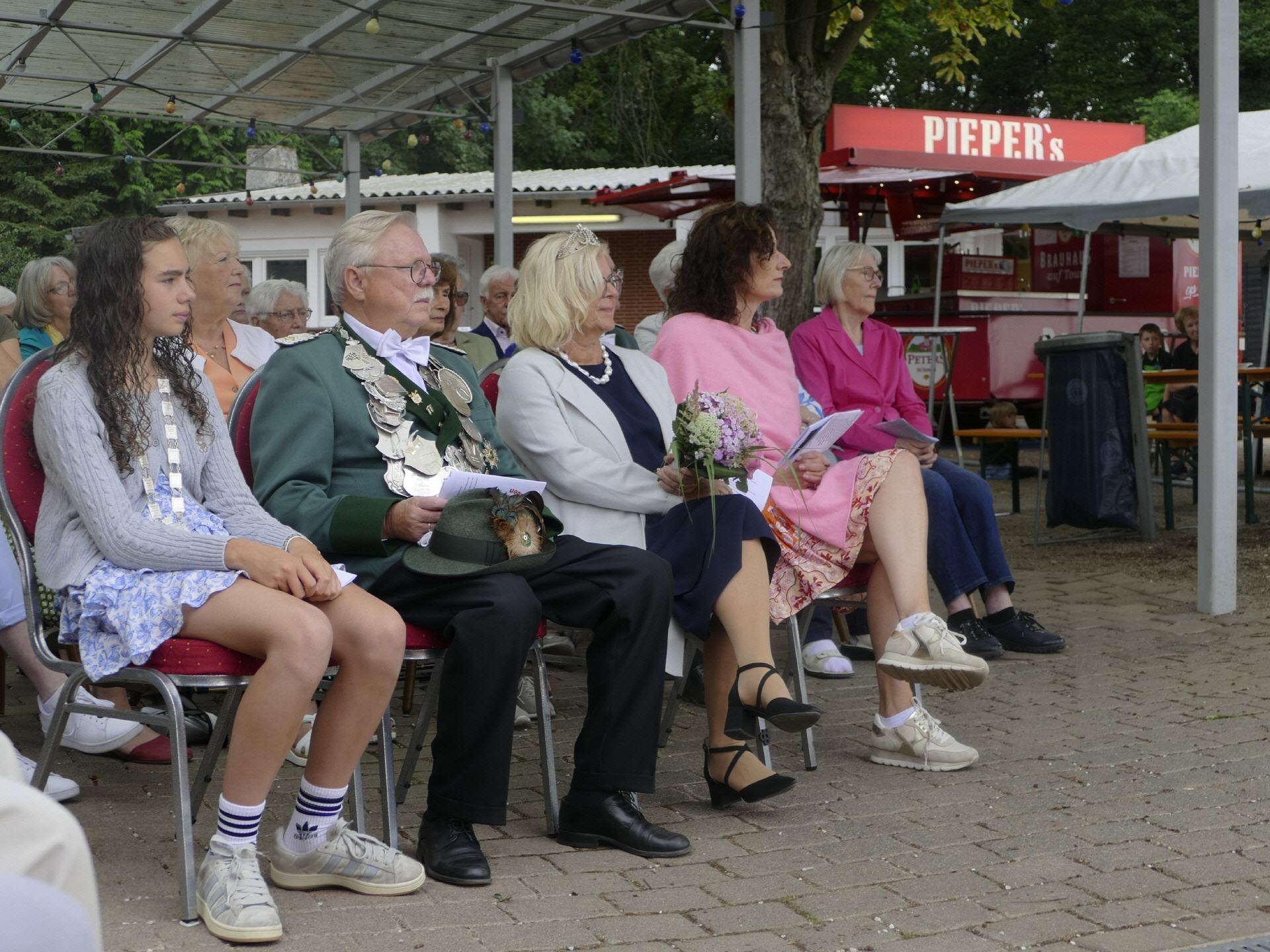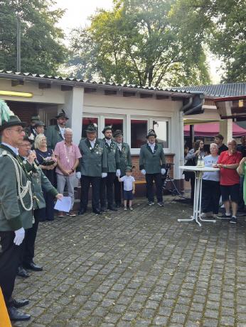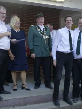 Danach zog die Bruderschaft zum Schützenplatz, wo unser 1. Brudermeister im Beisein des noch amtierenden Königspaares sowie der neuen Bürgermajestäten die zahlreich erschienenen Gäste begrüßte.