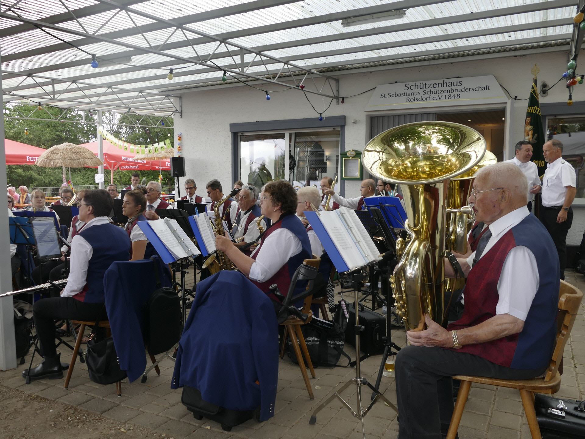 Parallel dazu begannen, musikalisch begleitet von den Musikfreunden Roisdorf, die Schießwettbewerbe der Gast- und Ortsvereine sowie das Bürgerkönigs- und Bürgerprinzenschießen. Bei einer Rekordbeteiligung von insgesamt 10 Mannschaften, konnte sich bei den Ortsvereinen - wie schon 2022 - die BSG Roisdorfer Quellen Tiger durchsetzen, vor dem Roisdorfer Ortsausschuss und dem Roisdorfer Pfarrausschuss.
