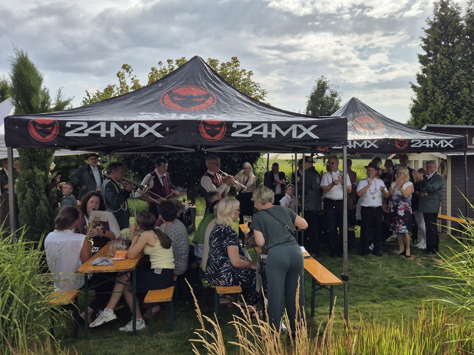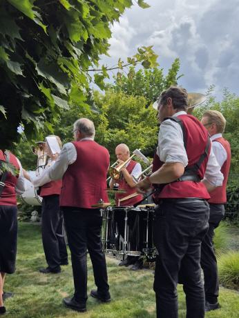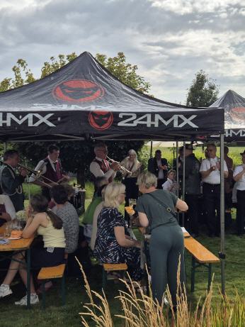 Das zwischenzeitliche Unwetter nahmen die Gäste mit viel Humor und die Musikfreunde ließ sich dadurch nicht davon abhalten, zu einem letzten Ehrentanz aufzuspielen.