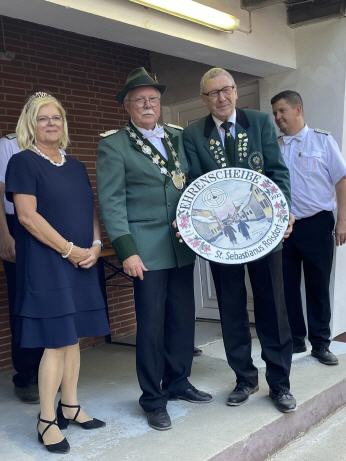 Letztere konnten sich beim Schießen auf die Ehrenscheibe durchsetzen und sicherten sich mit dem besten Schuss die, in liebevoller Handarbeit von Dr. Ernst Gierlich gestaltete, Holzscheibe. Diese zeigt in diesem Jahr die Roisdorfer Brunnenstraße in den 1950er Jahren.