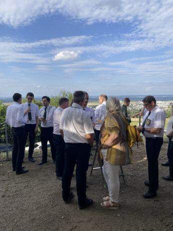 Gegen 16:00 Uhr versammelte sich die Bruderschaft in Alfter zur offiziellen Verabschiedung des amtierenden Königspaares Christian und Silke Rott. Gemeinsam mit den neuen Bürgermajestäten sowie einer Abordnung der Musikfreunde Roisdorf machten wir uns auf den Weg zum Königspaar, das - unterstützt von vielen fleißigen Helferinnen und Helfern - für Speis und Trank gesorgt hatte.